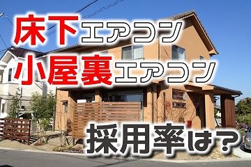 小屋裏エアコンの採用率は、床下エアコンに比べて、まだまだ低く、およそ30%くらいに留まっています。ただ、天井面に設置する、アメニティーエアコン(業務用の天井ビルトインエアコンのような形状)も含めると、40%くらいの採用率になります。
