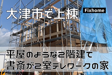 大津市で上棟工事|平屋のような2階建てテレワークの家