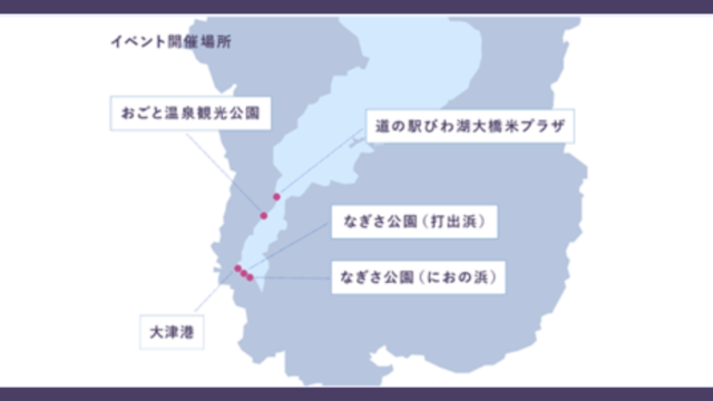 ・開催場所:大津港・なぎさ公園(打出浜)・なぎさ公園(におの浜) おごと温泉観光公園・道の駅びわ湖大橋米プラザ
