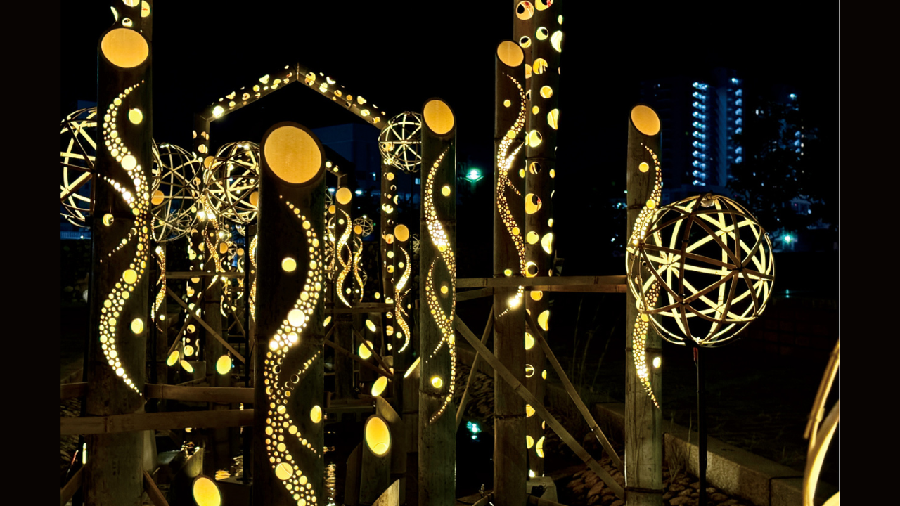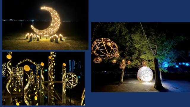 竹やヨシを使ったあかりが、琵琶湖畔を幻想的に彩っています。大津市を代表するびわ湖のビュースポットで【竹】や【ヨシ】でできた灯りのオブジェが展示されています。お子様と一緒に、あかりを探したり、写真を撮ったりして是非楽しんでください。