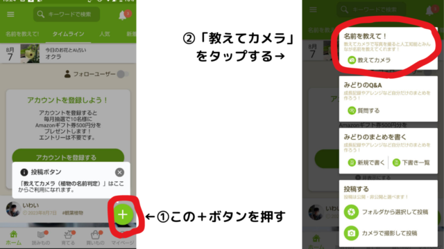 ②「教えてカメラ」をタップ