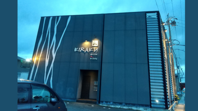 こちら守山市播磨田町にある「炭火Grill+和Dining きらく(KIRAKU)」さんです。焼肉屋さんとは思えないお洒落な外観です。