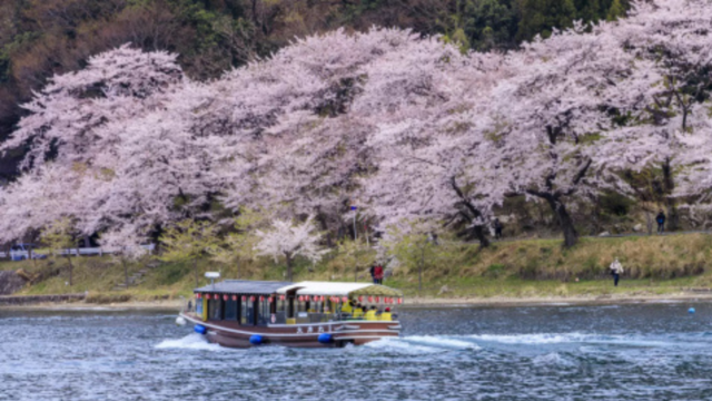 遊覧船に乗って湖上から眺める桜並木は、陸から見るのとはまた違った美しさで、おすすめです。