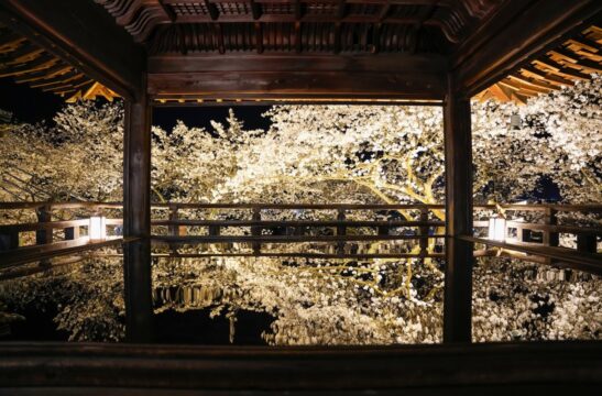 特に、ライトアップされた夜桜は、幻想的な雰囲気に包まれ、訪れる人々を魅了します。若者に人気の桜のリフレクション、まだ少し予約が空いています!