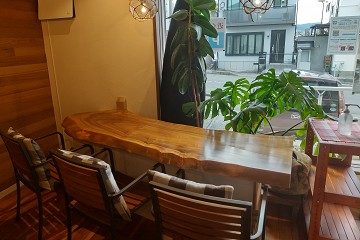 ↓窓際にカウンター席があります。観葉植物があって落ち着いたお洒落な雰囲気です。この日はカウンターにお一人で来られてる男性のお客様が二人座っていらっしゃいました。男性が一人でも入れる雰囲気です。