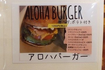 ↑お店のおすすめはALOHA BURGER(ポテト、サラダ付)1350円です。