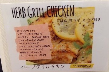 ↑ランチメニューもあります。ハーブグリルチキン(ごはん、サラダ付)1150円