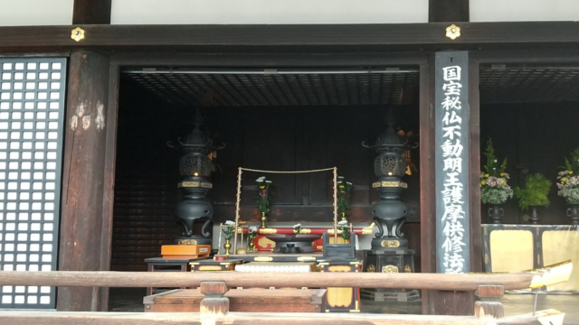この御影堂には絶対秘仏で非公開の不動明王坐像が祭られています。もちろんお姿は拝見出来ないのですが、お参りをするといつも清々しい気持ちになります。京都のお寺も色々な所を巡った経験がありますが、個人的には京都では一番のおすすめしたい仏像です。(見れないのでおすすめというのも何なのですが、とても感じるものがあります^^)