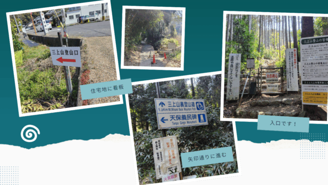 ローソン横の住宅地に看板があるので、それを見ながら進むと入口に到着。フェンスを開けて中に入って登山スタートです!