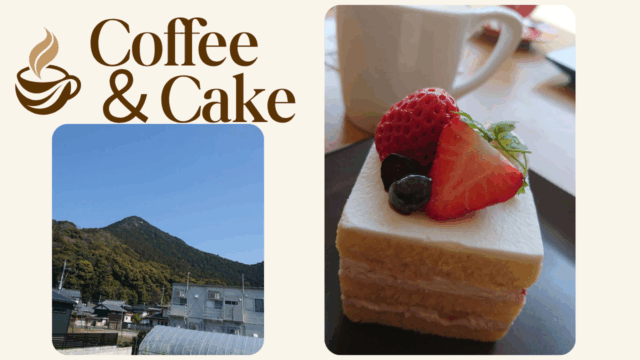 案内された席からは、さっきまで自分たちがいた三上山が。 仰ぎ見る近江富士を眺めながらいただく、丁寧に淹れられたコーヒーとケーキ……。程よく疲れた身体に、優しい甘さがじわ~っと染みわたり、まさに至福のひとときでした。