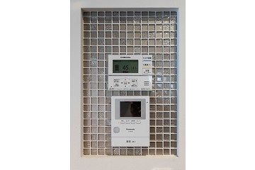 以前から人気なのが、キッチン周辺の照明スイッチやインターホン、給湯関係のリモコン、太陽光発電システムのリモコンパネルなどを集約して、それらが壁面から出っ張らないように、埋め込み型のリモコンニッチを希望される方が増えています。埋め込み二ッチの背面をクロスで仕上げるのではなく、キューブタイルを貼ることもできます。キューブタイルも、小さな面積であれば、費用も少なくて済むので、おしゃれ度をUPしたい方には人気があります。