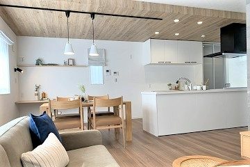 こちらは費用がかかる訳ではありませんので、オプションと呼んでよいのか分かりませんが、キッチンやキッチンダイニング部分だけを下がり天井にして、木目調などのアクセントクロスで仕上げるだけで、LDKのおしゃれさは格段にUPします。