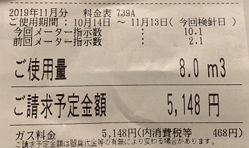 2019年12分の検針票は紛失されたそうですが、