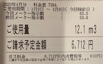 ガス料金は4800円とのことでした。