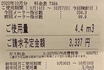 検針日の違いにより日数的には9日ほど足りませんが、ほぼ1年間の実際のデータです。