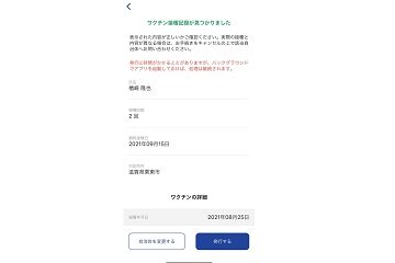 次にワクチン接種時に住んでいた自治体の選択です。今の住所と同じであれば、自動で表示されるので選択は不要みたいですね。下のブルーのバー「ワクチン接種記録を検索する」をタップすると、「ワクチン接種記録が見つかりました」と表示されました。無事に記録されていたみたいですね。良かった良かった。
