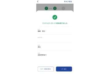 読み取りが完了すると、氏名、生年月日、性別、住所が表示されます。ここまではスムーズに進んでいます。