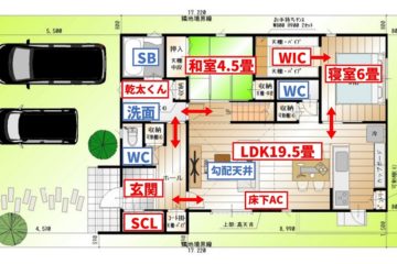 そこで今回は、一定期間、ご夫婦のご両親さまも同居することを前提にしつつ、1階だけで暮らしが完結する、まるで平屋のような2階建て、1階完結型34坪の家の間取りを図面で公開解説していきたいと思います。