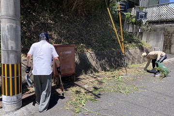 そこで、おおむね年に1回、せめて自分の家の前だけはと、フィックスにある草刈り機を借りて、根こそぎ草を刈ることにしています。準備して3分の1ほど刈った頃に、休みで家にいた長男が「オレもやったろ」と参戦。