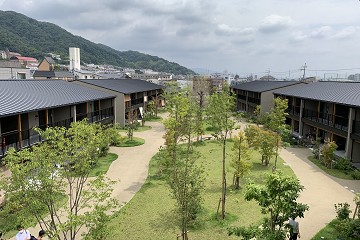 これまでの市営住宅や公営住宅のイメージを一新した、明るくゆとりのある建物のつくりや配置は、よくある区画割された分譲地や商業施設とは違って、境目のない自然と調和した街という言葉がぴったりでした。