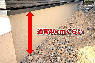 現在、建築工事が進行している現場でも深基礎工事を行った現場があります。ご覧のように、通常の高さの場合は、基礎高さは約40cm程度です。