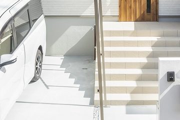 駐車スペースは確保できますが、このような土地の場合には、ご覧のように道路から建物が建っている地面が高くなっていることが多いのですので、玄関まで数段の階段が必要になるケースが多いです。