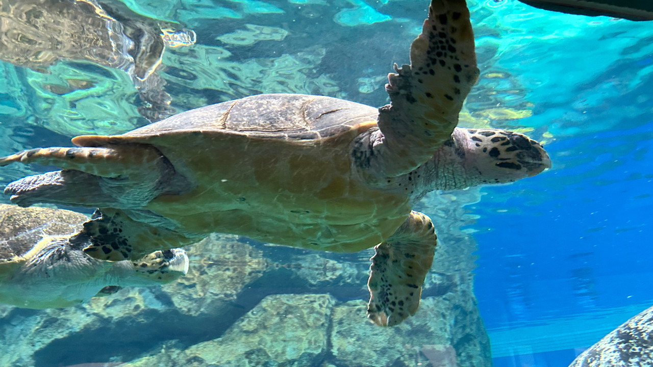 私が特に好きだったのは、ウミガメのプール。ゆったりと泳ぐ姿を見ていると、時間の流れがゆっくりになったように感じて、とても癒されました。