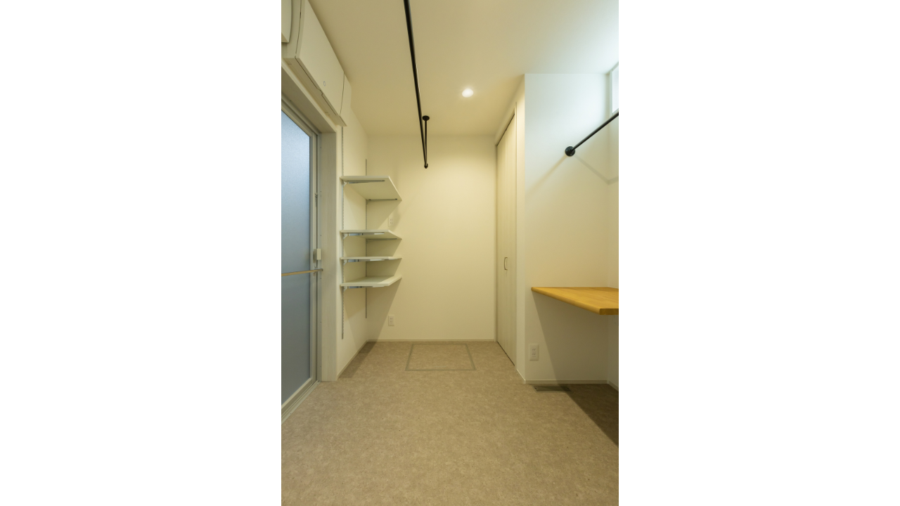 さらに、洗面室には使いたい時だけ物干しバーをセットできる「ホスクリーン」も備えました。