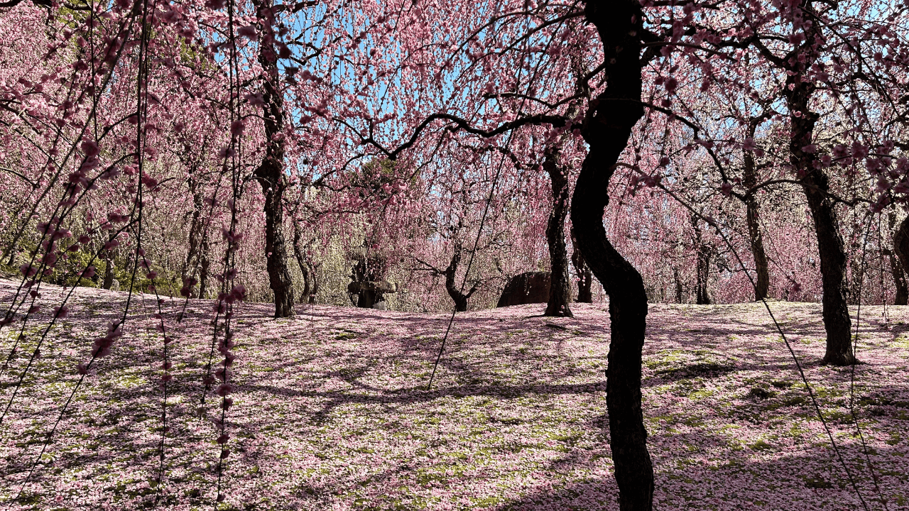 前日に雪のような雨が降っていたので、梅の花が結構散っていたのですが、それがまためちゃくちゃ綺麗でした!✨