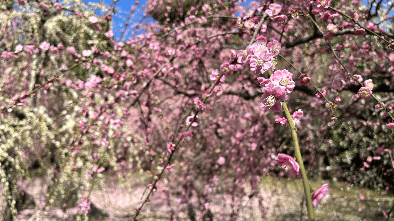 梅の花がすごくキレイということで、前からSNSで見て行きたいなと思っていたのですが、お花の見ごろって雨が降って散っちゃったり開花前だったりですごく一瞬なので、なかなか見に行けていませんでした。