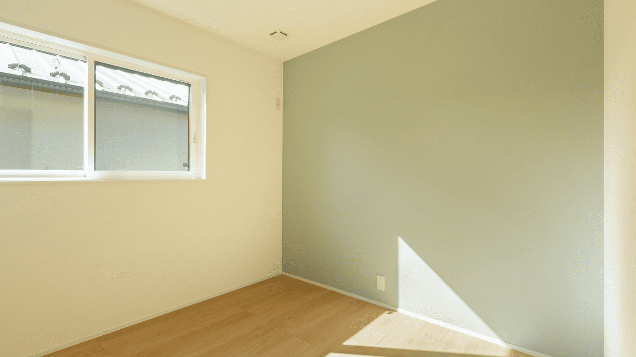 二階の洋室やウォークインクローゼットは、優しい色合いのクロスを採用されました。