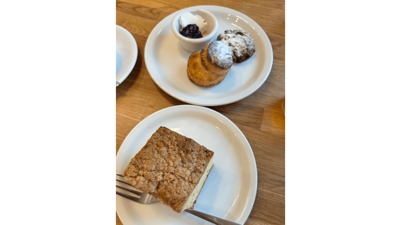 次は別々の物食べよう!ということで、母がアメリカンビスケットとナッツのスコーン、私はサワークリームコーヒーケーキをいただきました!