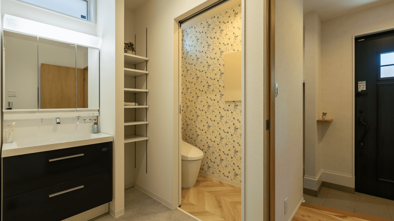 帰宅後すぐに手洗いができる間取りも嬉しいですね✨洗面台の隣には、可動棚を設置しているのでタオルやハンドソープの詰め替えなども収納しておくことができます。