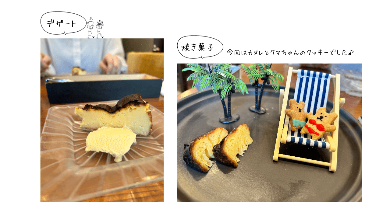 デザートは焼き菓子で可愛く盛り付けられたプレートと、日によってかわるデザートがいただけます✨