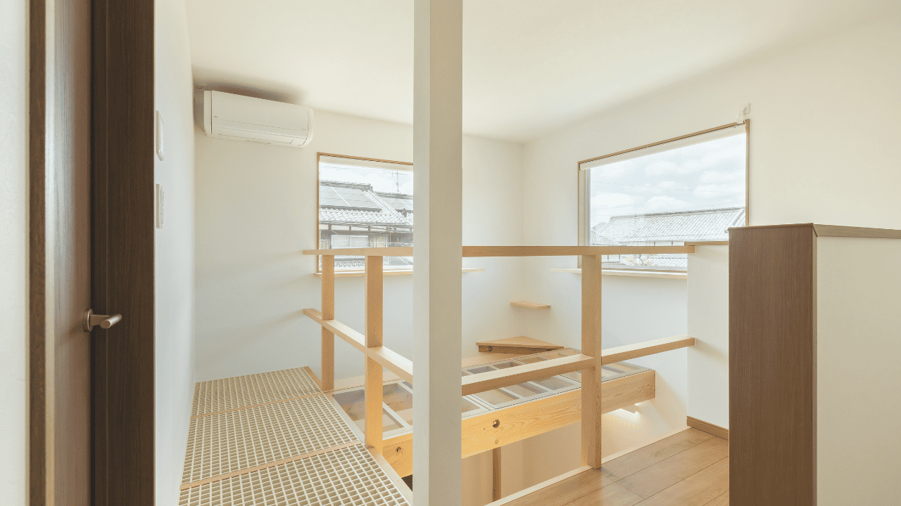 キャットウォークはアクリル板を設置しているので、一階からネコちゃんが歩いている様子や肉球をみることができます(*^^*)Fix窓に取り付けられたカウンターは、日当たりもいいのでネコちゃんが日向ぼっこできますね🌞