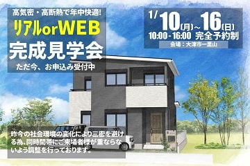 2022年1月大津市一里山|新年最初の完成見学会|直前予約状況