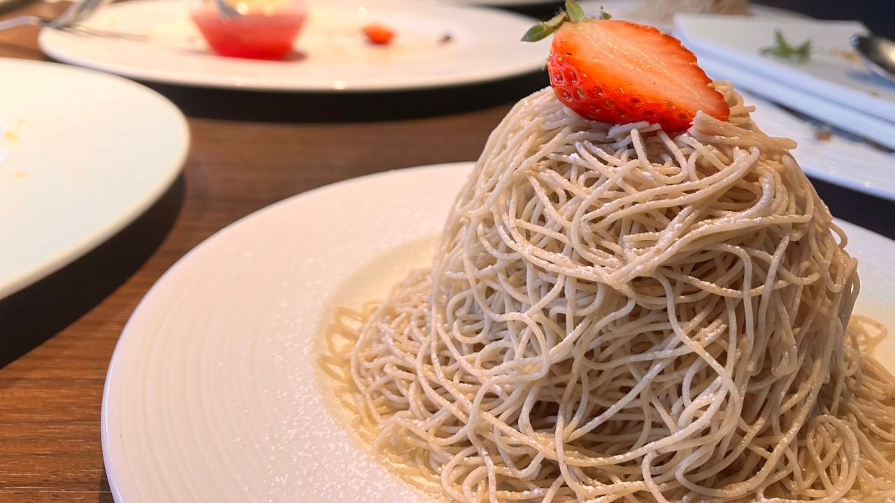 こんな美味しそうなモンブランを、その場で絞り出し器で作ってくれたりします!