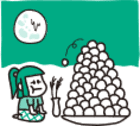 お月見といえば、ピラミッド状に盛りつけるのがポピュラーですよね。お団子の白くて丸い形は、満月を表しているそうです。月がきれいに見える場所を選んで、15個のお団子を山形に積み上げて飾りつけましょう。
